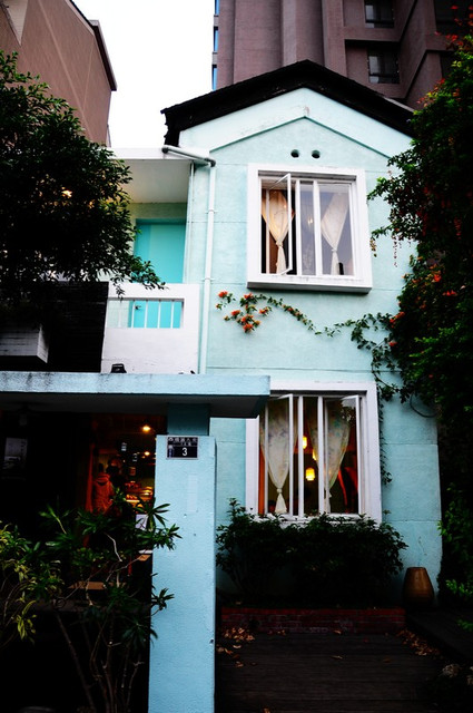 位於小巷弄之間的藍色外牆獨棟屋子...