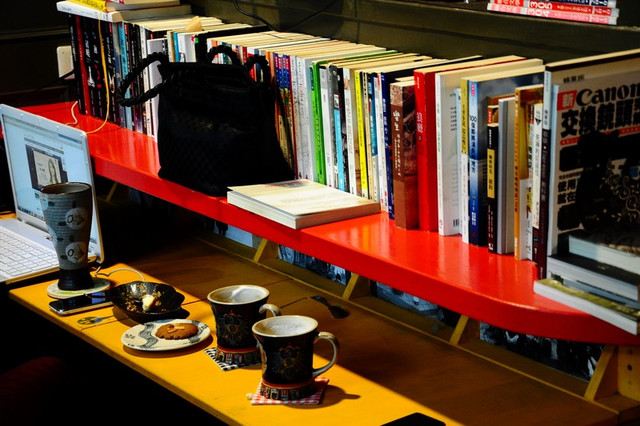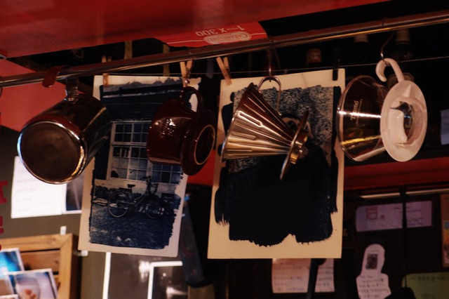 工作檯上都是手沖咖啡的工具...和相機...兩者都是老闆的最愛...