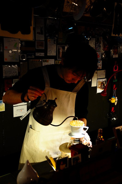坐吧台的好處就是可以欣賞老闆手沖的技法...