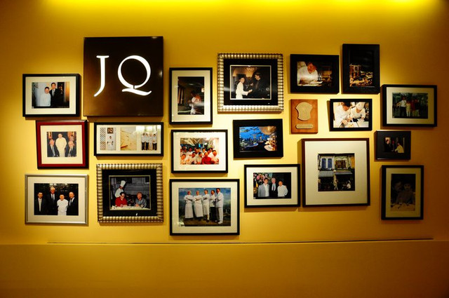 座位後方牆上掛滿了郭文秀主廚與名人的合照...