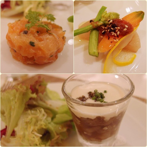 開胃菜...地膚子茄子凍/松露鮭魚塔塔/陽光蔬菜沙拉