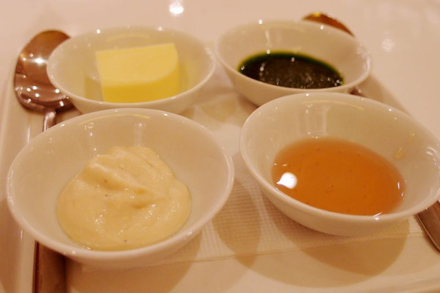 總共有四種口味可以自己搭配...大蒜馬鈴薯/羅勒青醬/肉桂蜂蜜/奶油