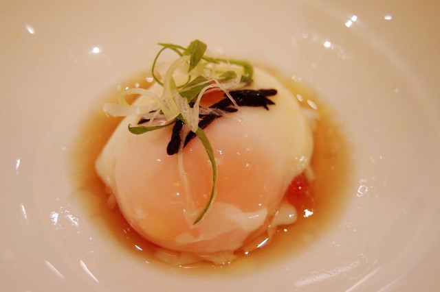 溫泉蛋...鮭魚卵搭配紫蘇醬油和海帶芽...