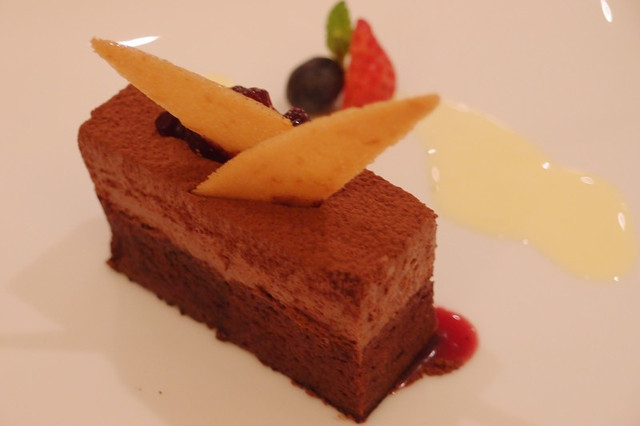 法芙娜巧克力蛋糕與紅酒醃漬綜合野苺...
