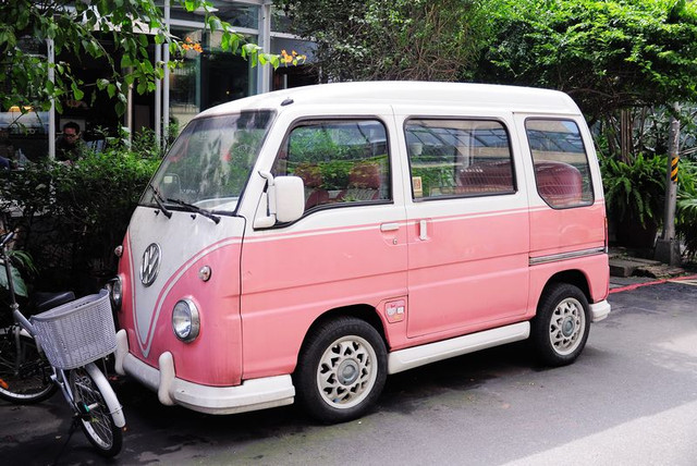 走進40弄很快就會看到停在路邊的粉紅白福斯T車...