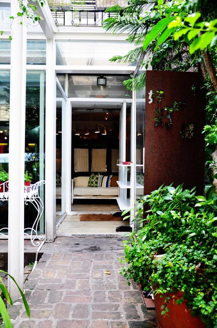 庭園搭上白色建築...很悠閒且讓人放鬆的門口...