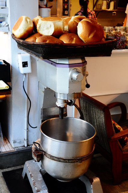 進門就可看到這台攪拌機...和在上面的麵包...都是好樣自己製作喔!