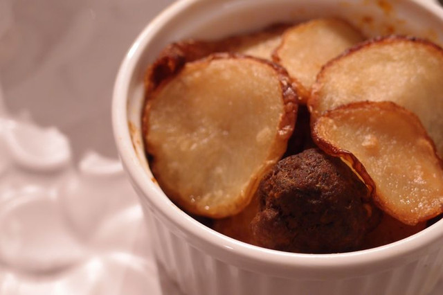 主菜是微辣西班牙肉丸佐雪莉醬汁...