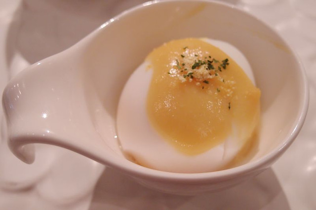 剖開蛋後...橘黃色的蛋黃很可口...
