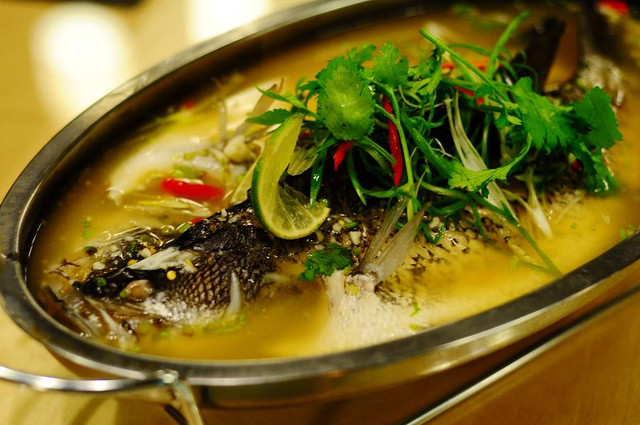這也是我吃泰國菜必點的菜色...新鮮的鱸魚用泰式的檸檬酸辣來蒸煮...