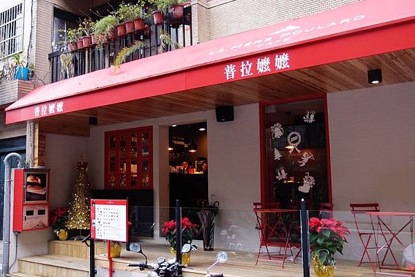 紅色是La Mère Poulard 普拉嬤嬤的主色...遠遠地就很醒目!