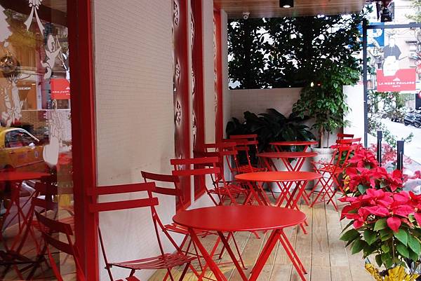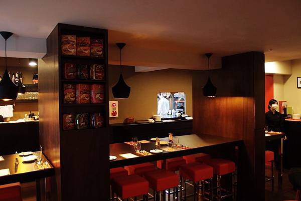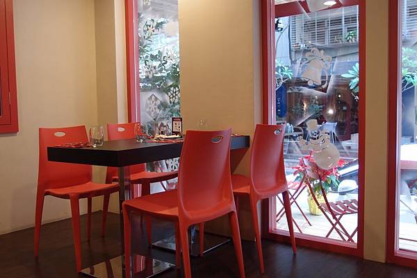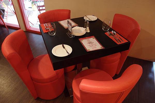 一踏進餐廳會先看到高腳椅區...高腳椅依舊是用紅色...