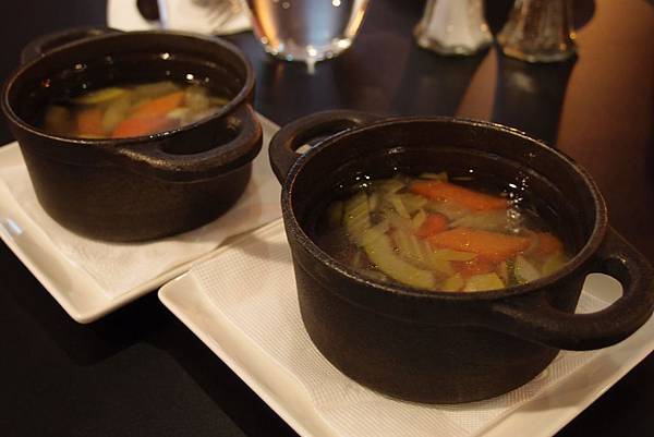 其實是蔬菜清湯...不過很不錯喝!鑄鐵鍋燜煮的湯真的不賴!看來真的要買一個回家試試!