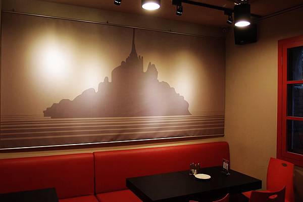 遠端角落是一個長沙發區...牆上掛著法國著名景點聖米歇爾...這也是La Mère Poulard 普拉嬤嬤的故鄉...