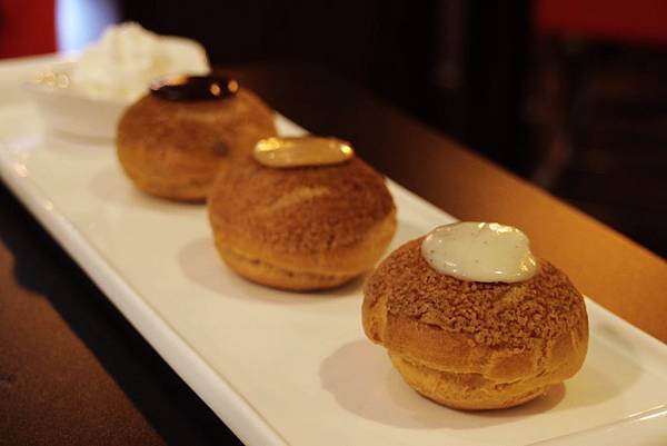 泡芙上面點綴的是泡芙的口味...奶油、焦糖、巧克力...