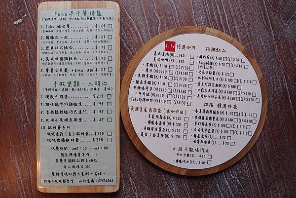 菜單有兩個...方形的是餐點...圓形的則是飲料...