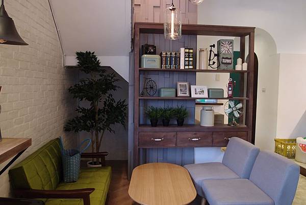 沙發區看起來很舒適...顏色的配置也很棒...很適合在這裡窩上一陣子!