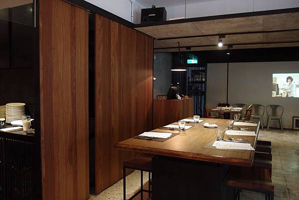 靠近餐廳內部的牆面設計成一道投影牆面...