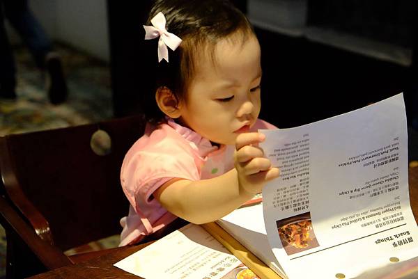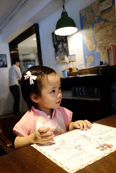 又到了哈寶點餐時間...服務生姊姊給了哈寶一張兒童餐紙和一隻蠟筆...