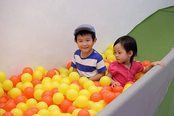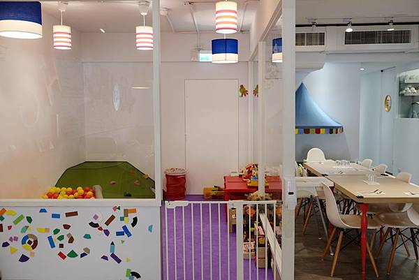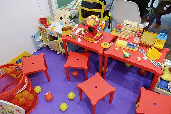 小朋友的遊樂區主要分成三區...分隔的球池和玩具區、閱讀與桌遊區、還有一個小小的適合小baby的小池子...