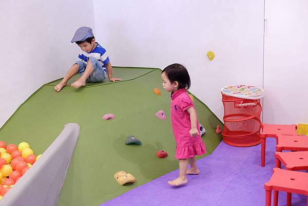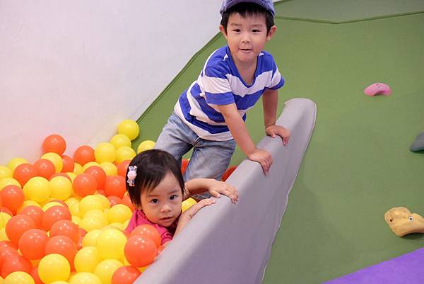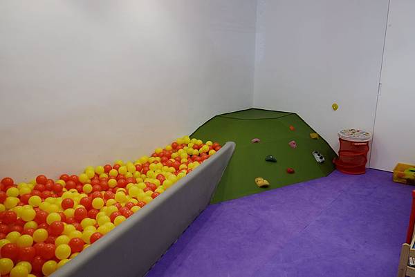 小小的球池...大約四個小孩就會太擁擠了...後面的攀岩還蠻不錯得