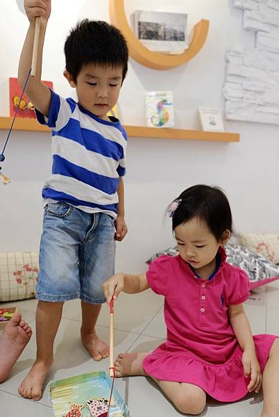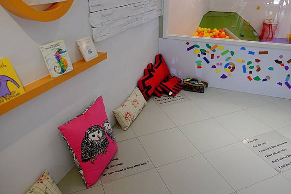 閱讀和桌遊區...玩一玩遊戲區後可以把小孩拉到外面來冷靜一下看看書、玩玩拼圖...
