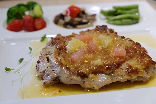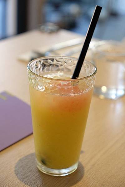 橙汁雞腿...雞腿用烤的方式料理...在淋上鮮新柳橙和葡萄柚調成的醬汁...清爽不油膩...