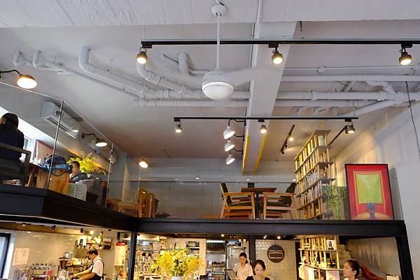 櫃檯和廚房的上方用夾層的方式增加空間...也區隔空間...