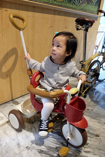 哈寶發現桌子下有一台三輪車...這可是iimo的第一代...