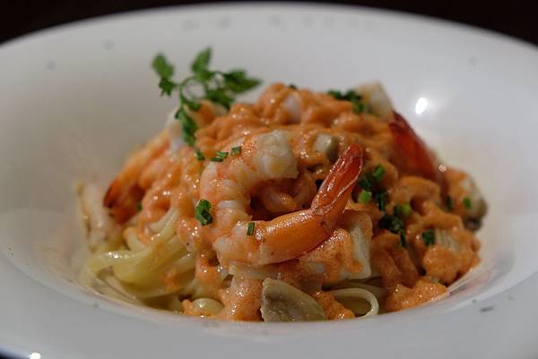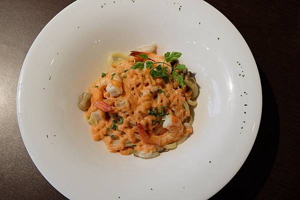明太子鮮蝦義大利麵...菜單上的推薦餐點...