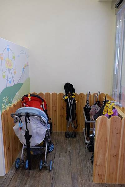 門口規劃了一個放置推車空間...貼心又可以整齊擺放!