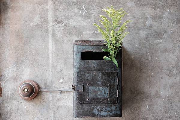 老門鈴和老信箱...插上一束綠色植物...很有歐洲鄉村的味道!