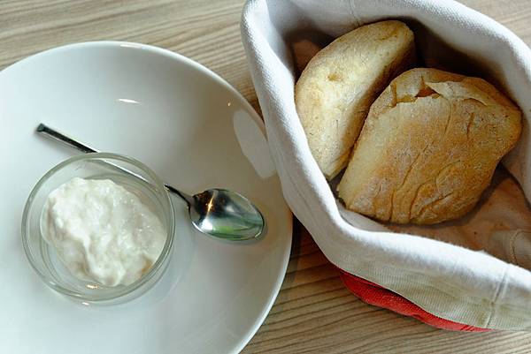 來看看餐點吧....套餐的軟麵包....搭配特製的美奶滋...好吃! 續麵包要另外點...