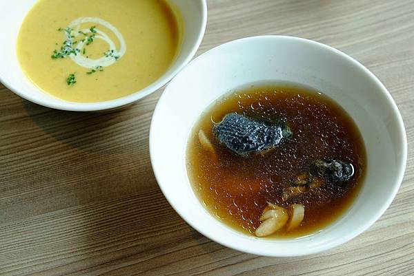 套餐的湯...前面是雞湯...後面是南瓜濃湯....中西式湯品都有囉