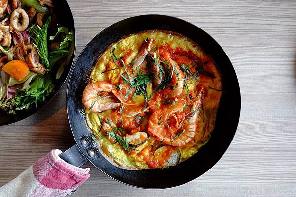 單點的瑞可達乳酪番茄鮮蝦烘蛋