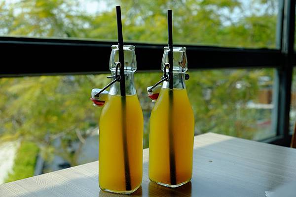 套餐的飲料....兩杯都點新鮮果汁來慰勞一下兩個小MODEL...