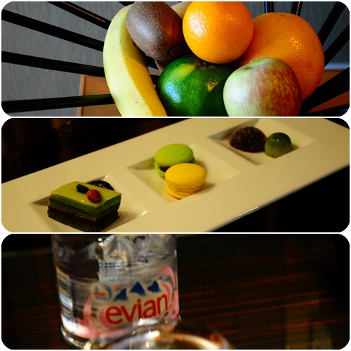 一進房門就有的迎賓水果...法式甜點...和貴貴的礦泉水...(只限兩瓶...多了就要自費囉)